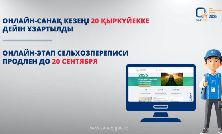 Ауыл шаруашылығы кәсіпорындары үшін онлайн-санақ кезеңі 20 қыркүйекке дейін ұзартылды
