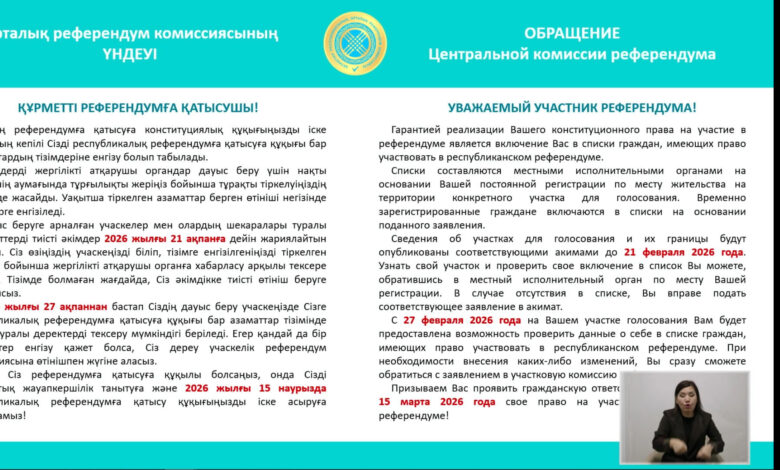 2026 жылғы 12 ақпанда Қазақстан Республикасы Орталық референдум комиссиясының (ОРК) отырысы өтіп, 15 наурызға тағайындалған республикалық референдумды өткізу және ұйымдастыру мәселелері қаралды.