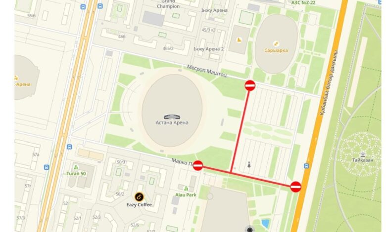 Мереке күндері тұрғындар мен қонақтардың қауіпсіздігі мен жайлылығын қамтамасыз ету мақсатында бірқатар уақытша шектеулер енгізіледі. Атап айтқанда, 21–22 наурыз күндері Астана Арена стадионы маңында көлік қозғалысы шектеледі. Шектеу «Алау» мұз сарайы жақ беттегі көше мен стадионның шығыс жағындағы жолдарды қамтиды.