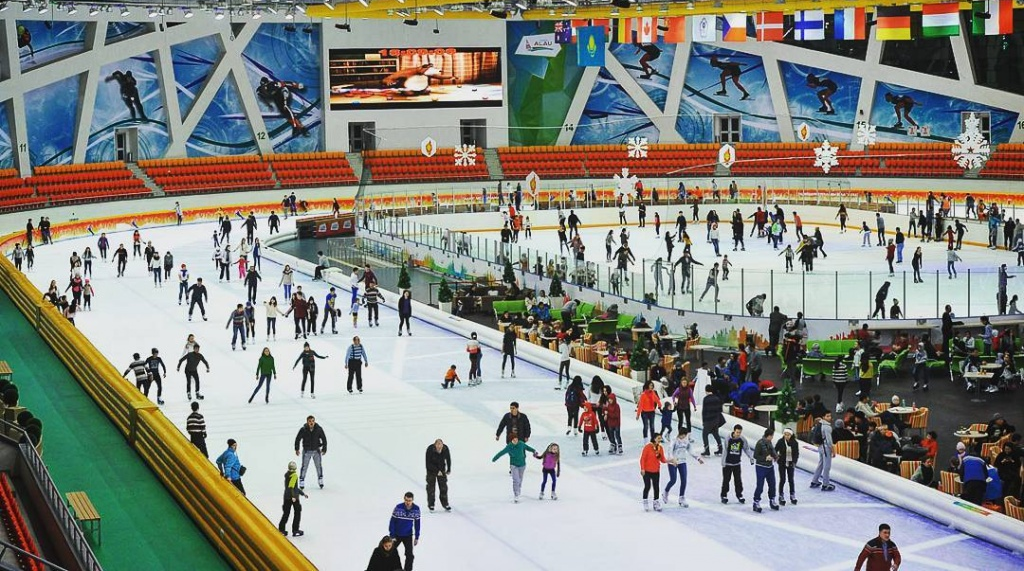 Фасадында кеңінен қолданылған әйнек панельдер табиғи жарықты молынан өткізіп, ішкі кеңістікті ашық әрі кең етіп көрсетеді. Ғимараттың иілген сызықтары мен жұмсақ формалары мұз үстіндегі қозғалыстың жеңілдігін символдайды.