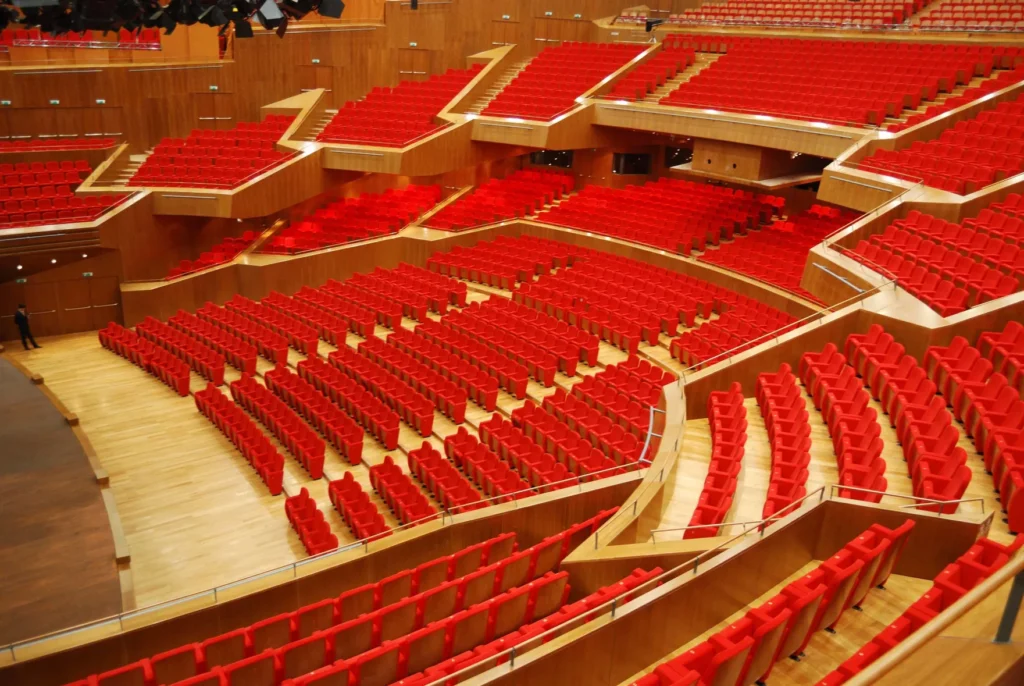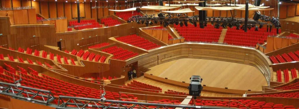 Концерт залы тек сыртқы келбетімен емес, ішкі құрылымымен де ерекше: