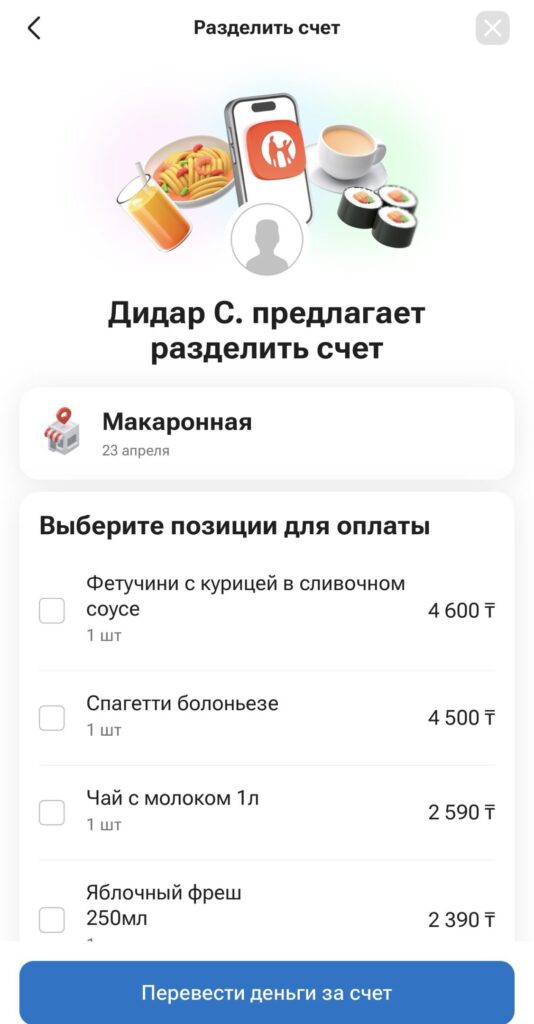 Қазақстанда цифрлық төлем мәдениеті тағы бір қадам алға жылжыды. Kaspi.kz қосымшасында енді достармен немесе әріптестермен бірге тамақтанған кезде шотты бөліп төлеу әлдеқайда жеңілдеді. Бұл функция күнделікті өмірдегі ең жиі кездесетін ыңғайсыз жағдайлардың бірін — «кім қанша төлейді?» деген сұрақты толық шешеді.