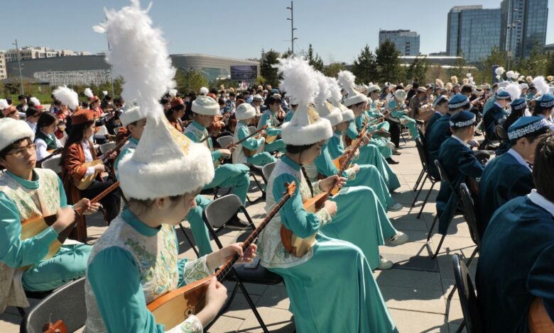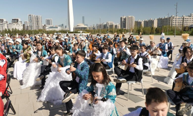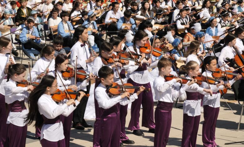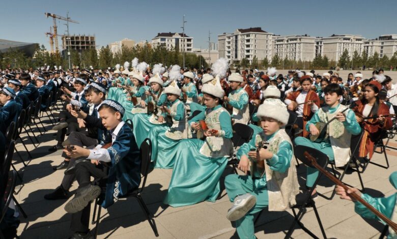 EXPO халықаралық көрме орталығы бұл жолы әдеттегі көрмеден бөлек, ерекше әуенге толды. Мыңдаған адам жиналған алаңда 2000-ға жуық оқушы бір мезетте күй орындап, нағыз музыкалық атмосфера орнады.