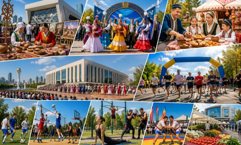 Қалалық концерттер «Жетісу» саябағында, Есіл өзені жағалауындағы Арбат аумағында және «Жастар» сарайында өтеді. Сондай-ақ сағат 12:00-де Қалалық алаңда Әзірбайжан Мәмбетов атындағы Мемлекеттік драма және комедия театры әртістерінің мерекелік қойылымы басталады.