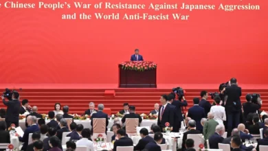 Президент Қасым-Жомарт Тоқаев Екінші дүниежүзілік соғыстағы Жеңістің 80 жылдығына орай өткен әскери парадты тамашалаған мәртебелі меймандардың құрметіне ҚХР Төрағасы Си…