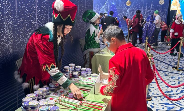 Отдельное внимание было уделено интерактивным зонам. Для детей работали пять тематических станций: VR-очки, фотозона с колейдоскопом, сбор подарков в специальные боксы, аквагрим, а также дополнительная развлекательная площадка.