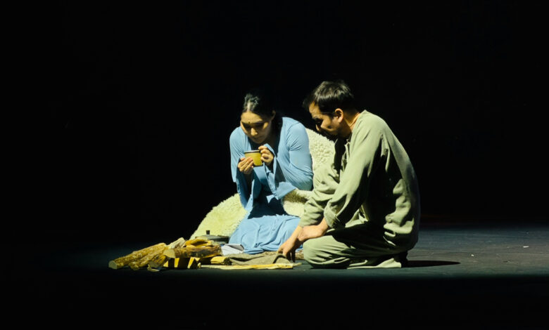 Новая постановка обращается к глубоким внутренним переживаниям человека, сложным отношениям между мужчиной и женщиной и теме невысказанной правды. На сцене разворачивается камерная история всего трех персонажей – Шолпан, Сарсенбая и Азимбая.